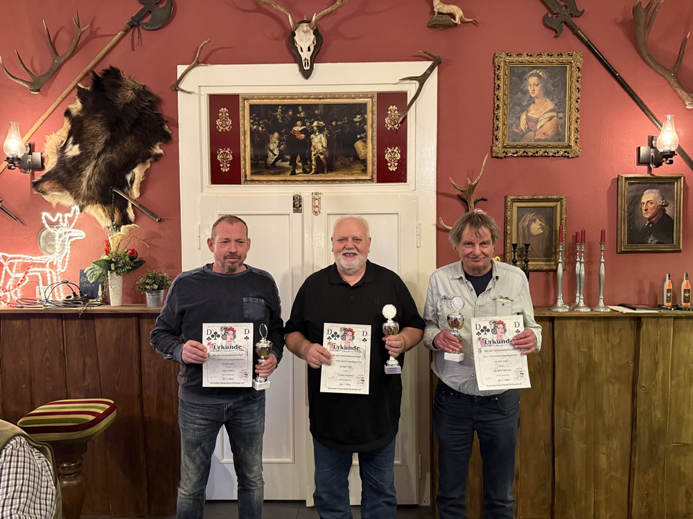 Was soll ich sagen! Das war ….., kurz und locker vorgetragen, vom Erik, vom Frank und natürlich vom Präsidenten, dem Andreas, und der geschätzten Kassenwärtin Britta, mit Entlastung und Neuwahl der einzelnen Posten. Alle haben einen guten Job gemacht und wurden wiedergewählt. Nur der Bodo. Also der Bodo, der wollte nicht mehr, direkt im Vorstand sein. Kann man auch verstehen, jetzt müssen mal die jungen Leute ran. Wobei, Bodo, so alt bist du doch auch noch nicht. Apropos junge Leute. Der Verein wurde im Dezember 2001 gegründet und gehört heute mit seinen 15 Mitgliedern nicht zu den größten Vereinen, oder dem Verein mit den jüngsten Mitgliedern, ist aber der einzige Doppelkopfverein in Sachsen Anhalt. Und noch ein aber, was die jungen Leute angeht! Also, unser Verein, die Mitglieder, sind alle noch jung, jung geblieben, ganz sicher im Kopf, sonst würden sie ja nicht so gut Doppelkopf spielen. Ich würde sagen, wir sind im guten Mittelalter vertreten. Ja, selbstverständlich im mittleren „Lebensalter“, mich ausgeschlossen. Ich bin halt, wie soll ich sagen, schon eher im Anlauf auf das Zielgebiet. Eh, mit anderen Worten, auf das Mindesthaltbarkeitsdatum würde ich keine Wetten mehr abschließen. Wie auch immer, es müssen neue Mitglieder ran, jüngere, gerne, aber es dürfen auch ältere sein. Diesen Willen bekundete zu mindestens der Vorstand, neue Mitglieder anzuwerben. Und, was mich auch positiv überraschte, den ausgetretenen Pfad des normalen Vereinsleben mit neuen Ideen, ok, es war eine, Idee, zu