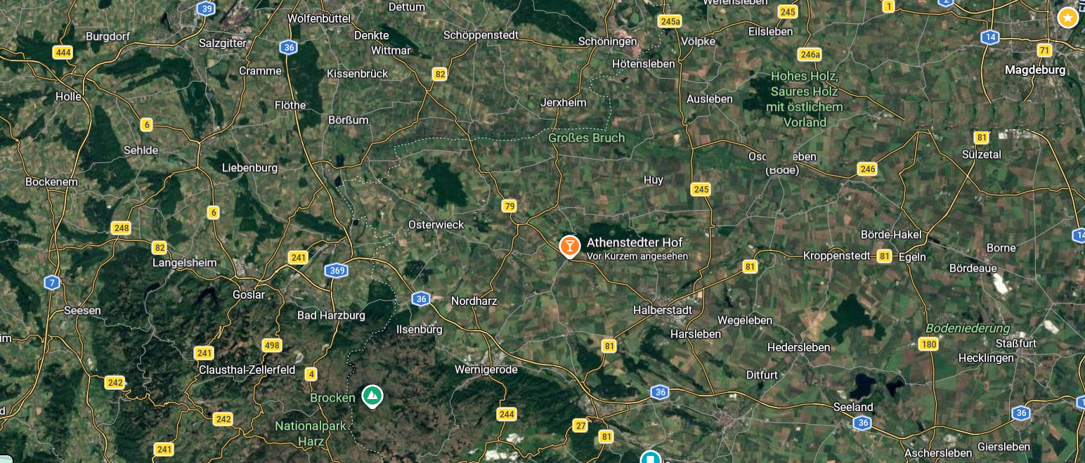 An der T-Kreuzung rechts auf die B79, in Athenstedt befindet sich links bei der Ampel der Athenstedter Hof