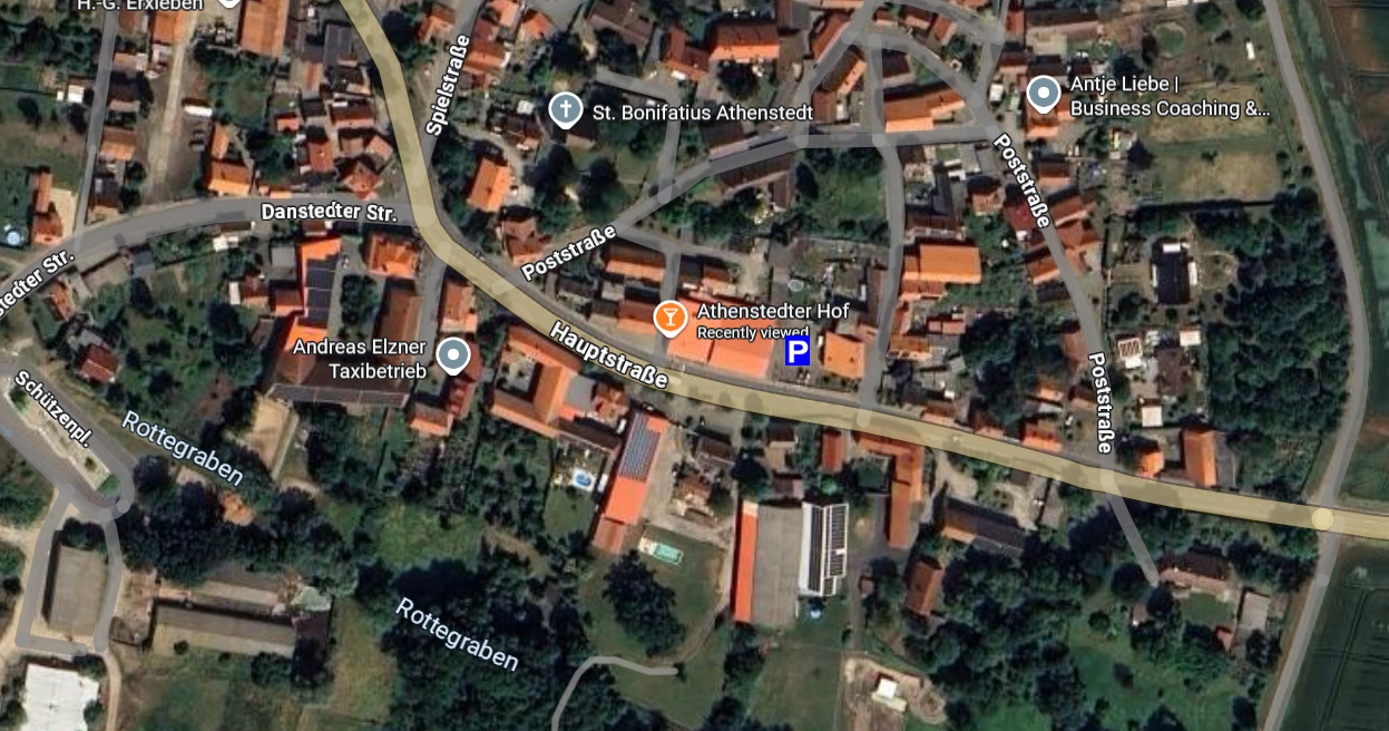 In Athenstedt bei der Ampel ist der Athenstedter Hof auf der rechten Seite