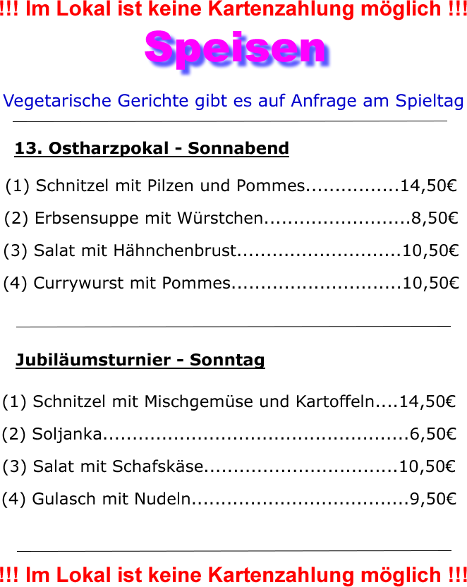 Essenvorbestellung (erforderlich zur Anmeldung) bitte per Mail an